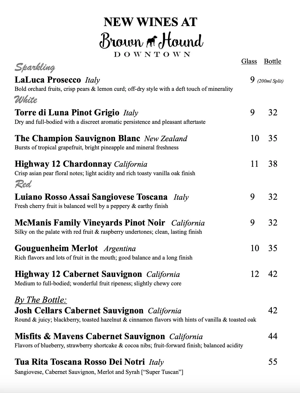 Brown Hound Downtown’s New Bar on the 1st Floor is opening soon with new wines and cocktails!